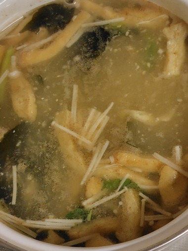 具沢山お味噌汁わかめ、えのき、油揚げ、小松菜おくら炒めカップちくわ炒め魚のフライ鶏唐揚げチョリソーウインナーおくらのゆかり和え焼きししとうパ···